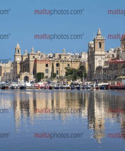 Birgu Sea front Waterline Parish Church San Lawrenz St Lawrence Reflections